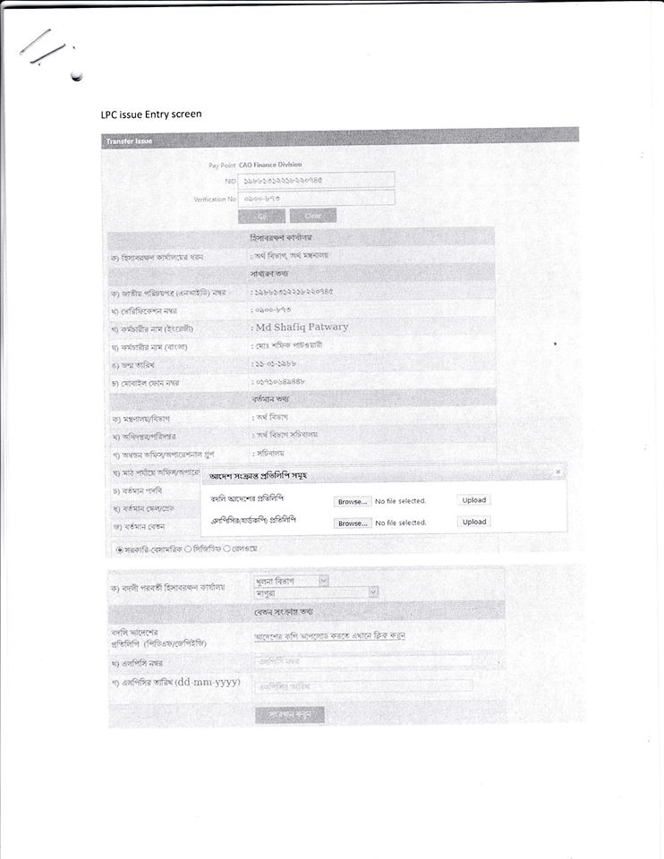 LPC গ্রহণ ও প্রেরণ সংক্রান্ত হিসাব মহা নিয়ন্ত্রক এর কার্যালয়ের চিঠি। (21/11/2019)