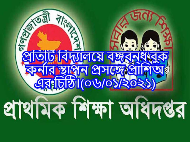 প্রতিটি বিদ্যালয়ে বঙ্গবন্ধু বুক কর্নার স্থাপন প্রসঙ্গে DPE এর চিঠি।(০৬/০১/২০২১)