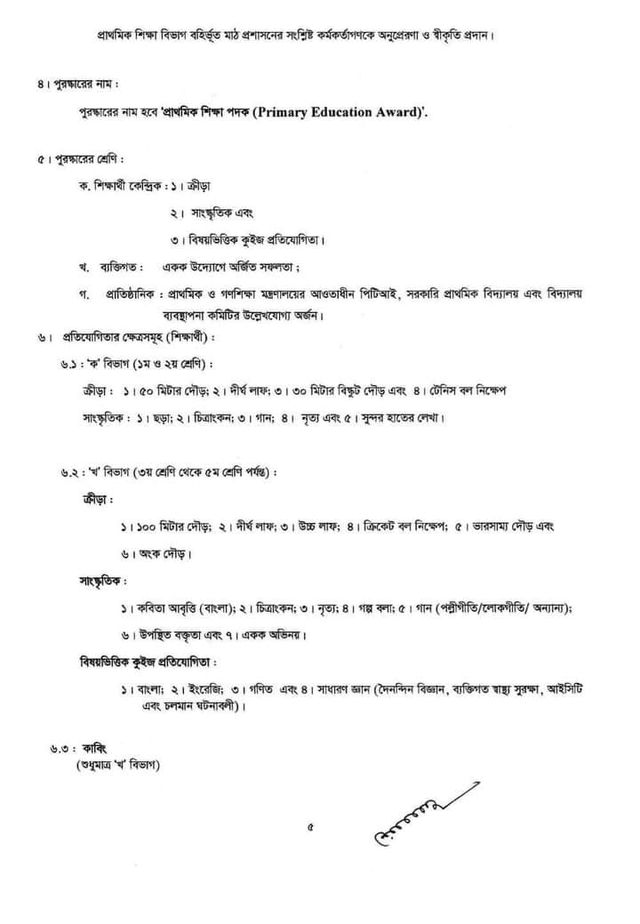 আন্তঃপ্রাথমিক বিদ্যালয় ক্রীড়া ও সাংস্কৃতিক প্রতিযোগিতা বাতিল করে এখন থেকে 'প্রাথমিক শিক্ষা পদক' নামে প্রতিযোগিতাটি অনুষ্ঠিত হবে।